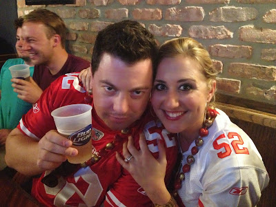 And because I'm a good wife, I'm extremely supportive of Mike's favorite boys too - the Niners. After a devastating defeat at the Super Bowl, Mike was more than anxious to start the 2013 year off on the right foot - so that means, we were headed to Finnerty's, THE New York City bar for 49ers fans. In fact, my husband was so excited, the reserved a table - a table that came complete with it's own private keg....yes, a full keg...a keg which we tapped with our friends before the end of the 3rd quarter. If there is one thing I love more than seeing my husband happy with his team bringing home a victory during the opening weekend of NFL football - it would be seeing the defeat of the Bear's division rivals - the Packers!